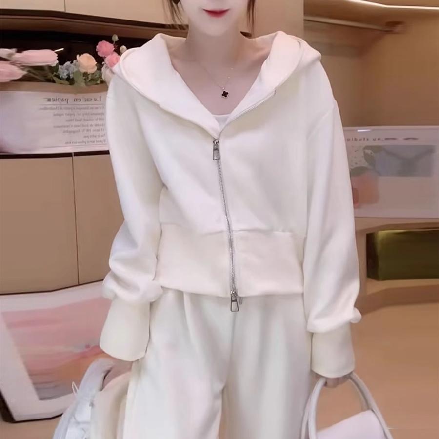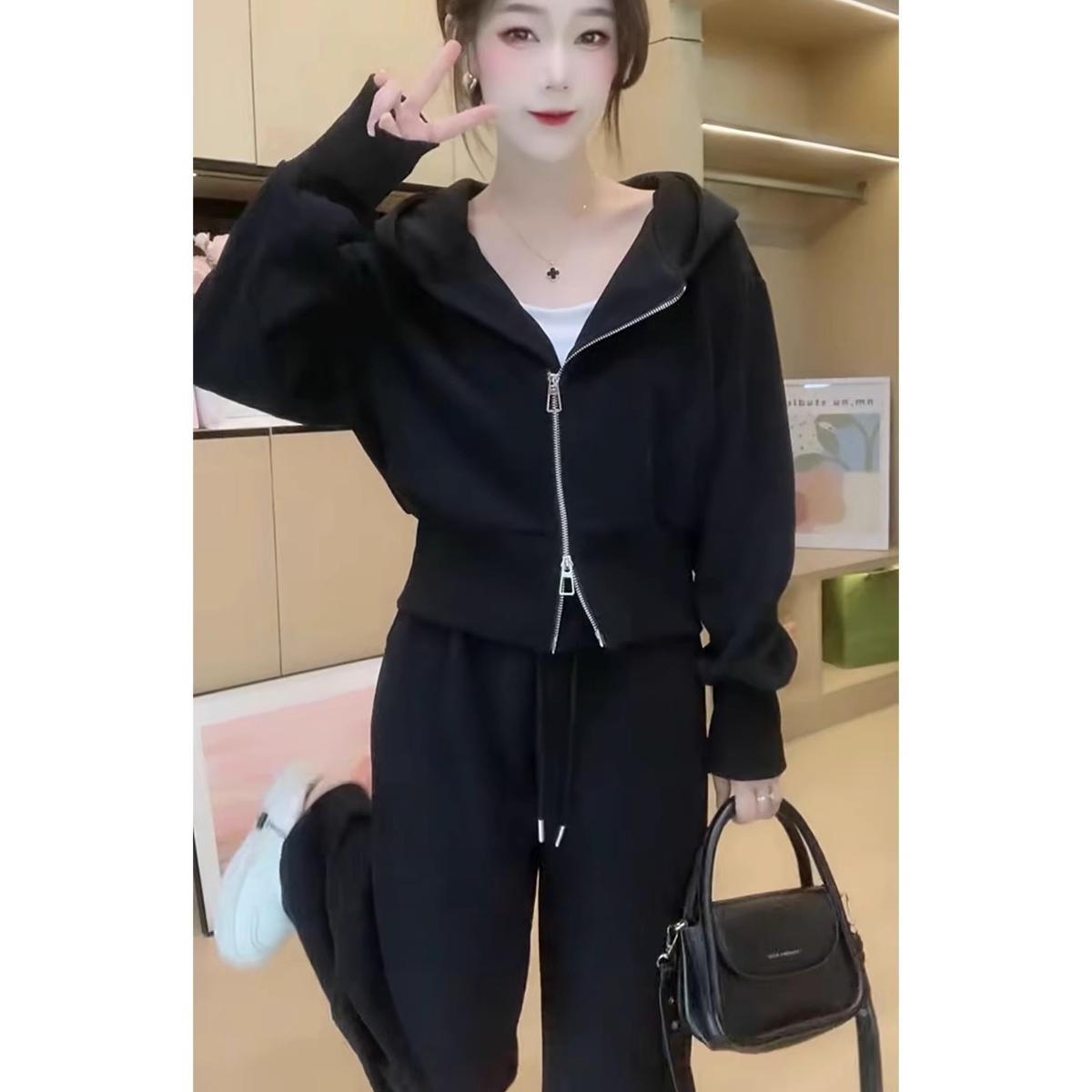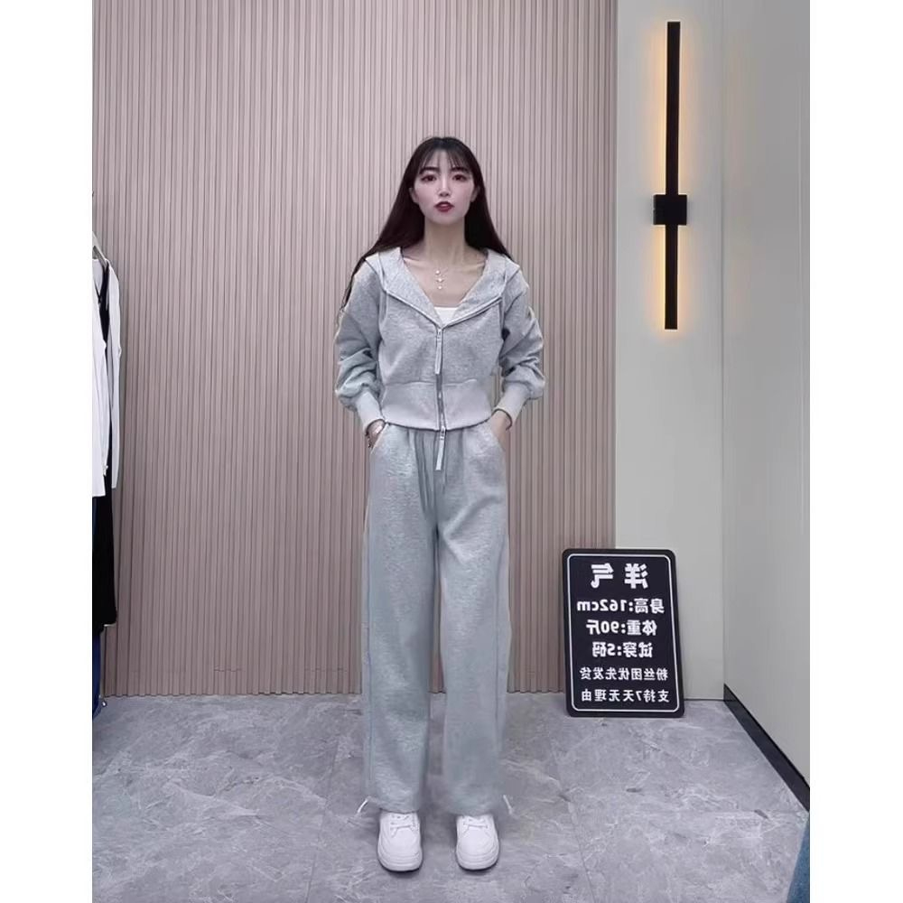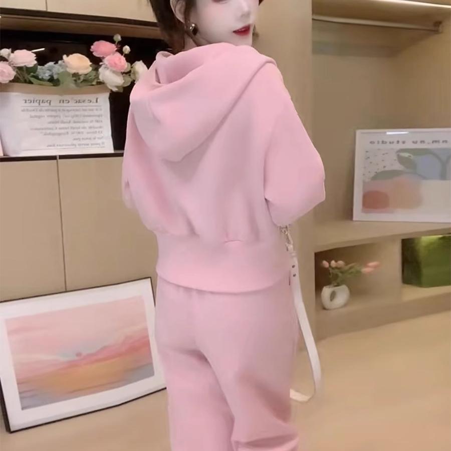 大码粉色卫衣连帽休闲运动套装女春秋冬胖mm网红炸街直简裤两件套