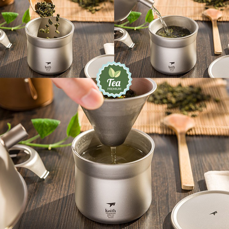 KEITH铠斯纯钛咖啡杯滤杯滴漏式过滤网漏斗手冲咖啡壶多功能茶杯