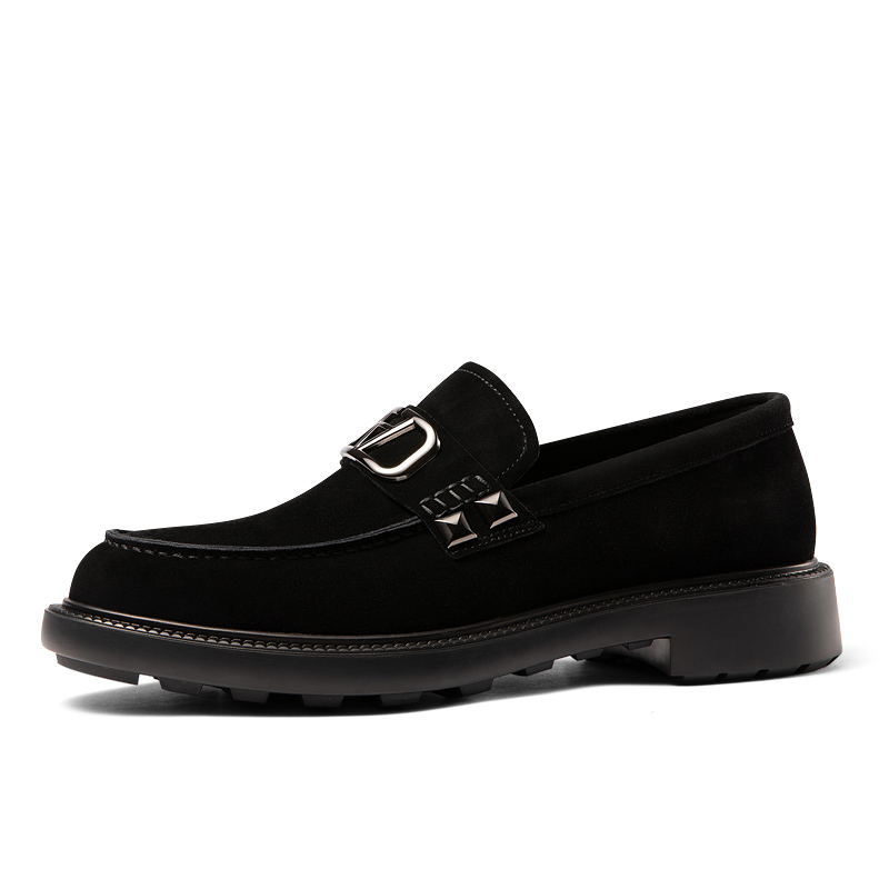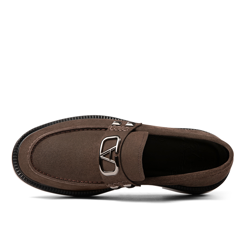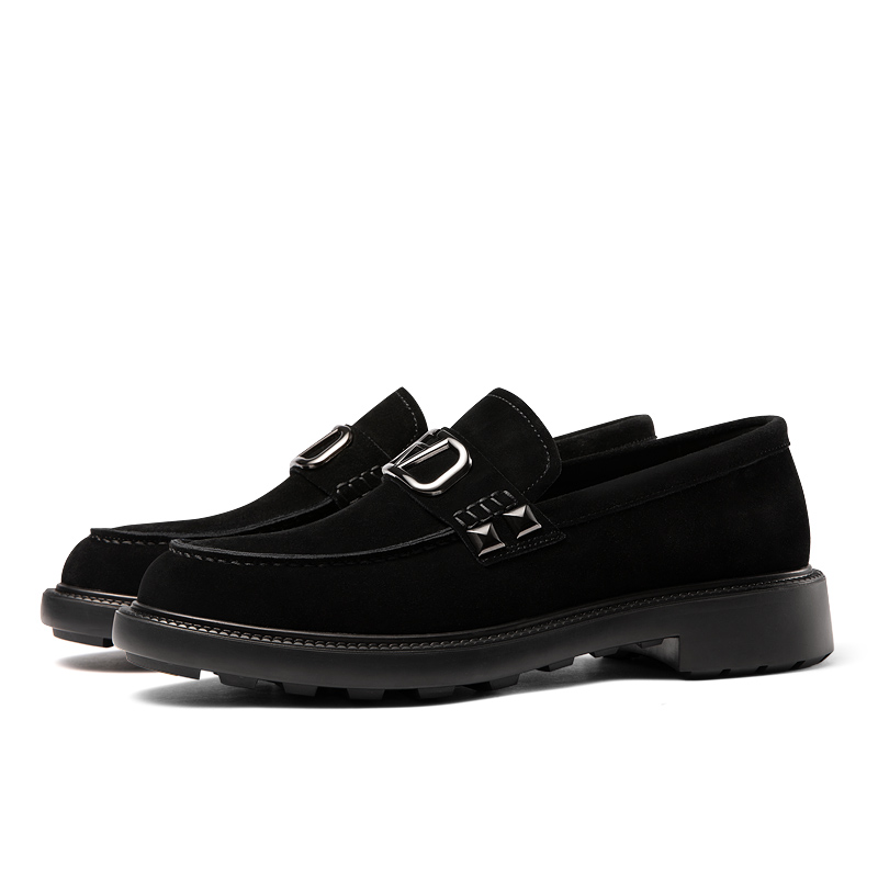 秋季新款英伦商务皮鞋男真皮翻毛反绒皮日常休闲男鞋厚底乐福鞋潮