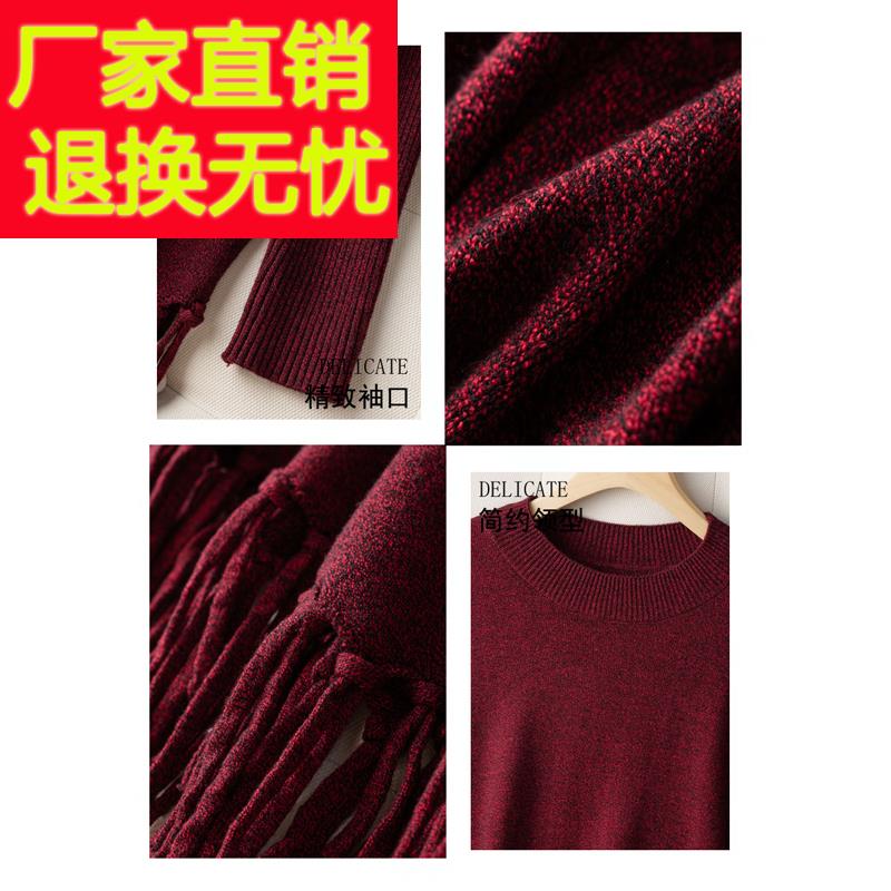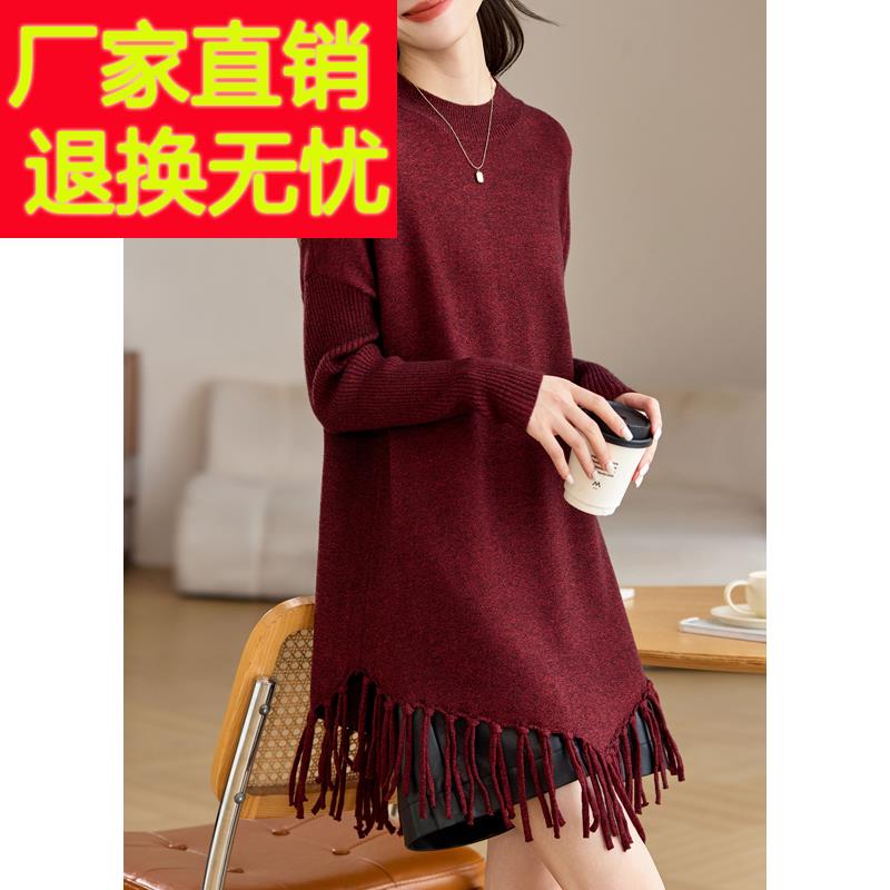 2024冬季新款高级感流苏长袖毛衣打底慵懒中长款气质宽松上衣女士