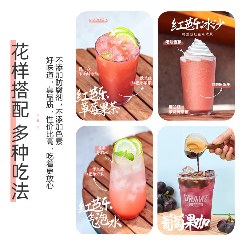 德兰兹芭乐浓缩汁金桔柠檬浓缩果汁饮料芒果浓浆西番莲果粒水果茶