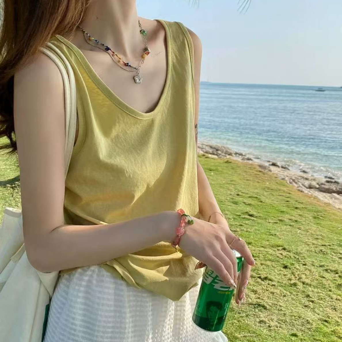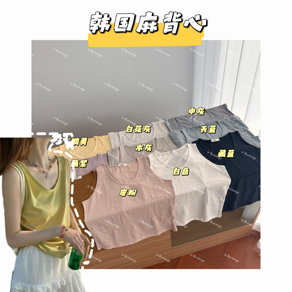 【韩国麻背心】韩风百搭吊带背心慵懒风松弛感百搭背心遮肉百搭女