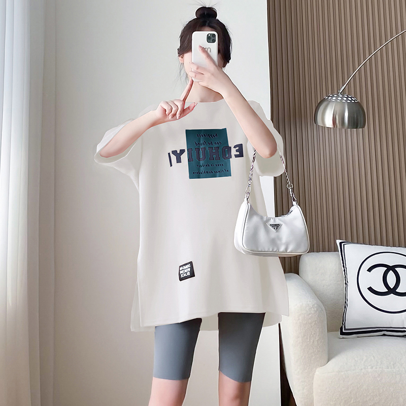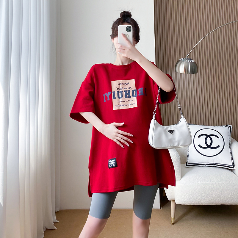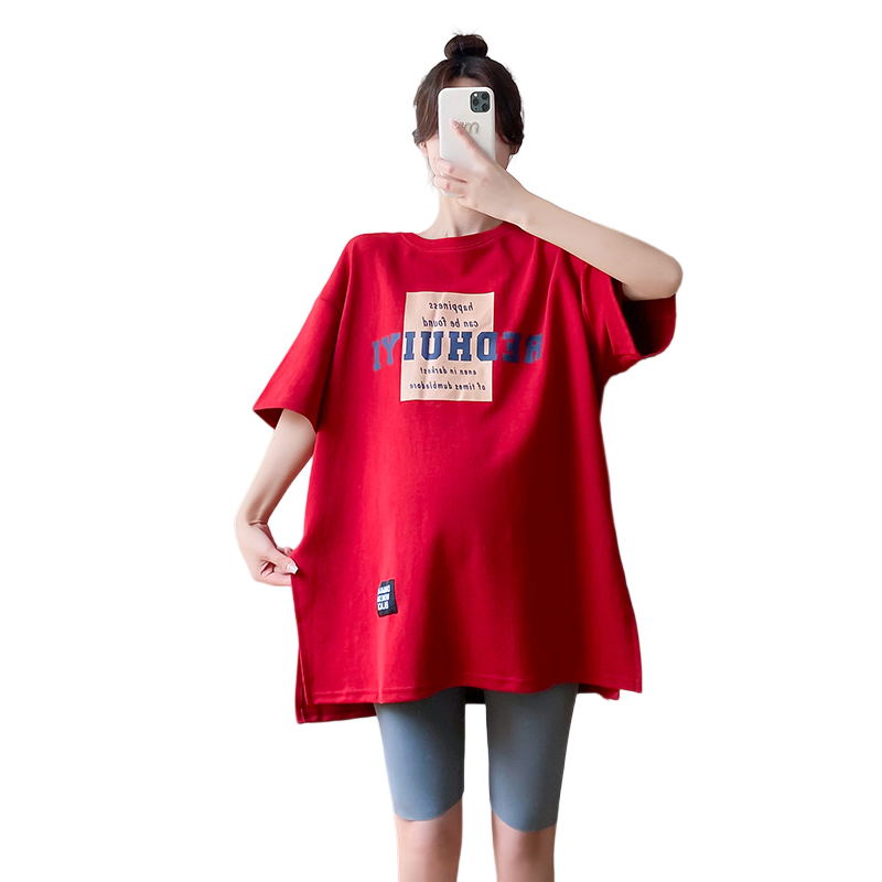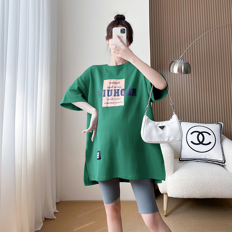 大码孕妇装短袖t恤女中长款懒庸风大板半J袖纯棉上衣宽松200斤套