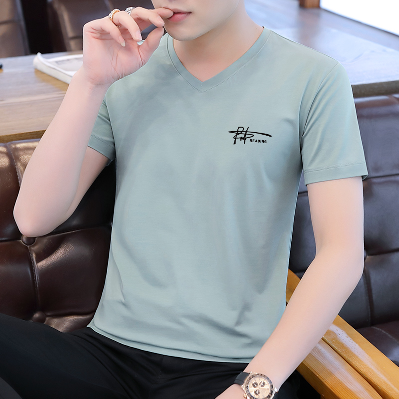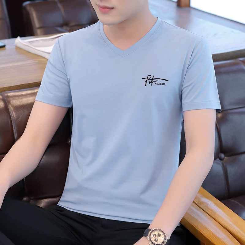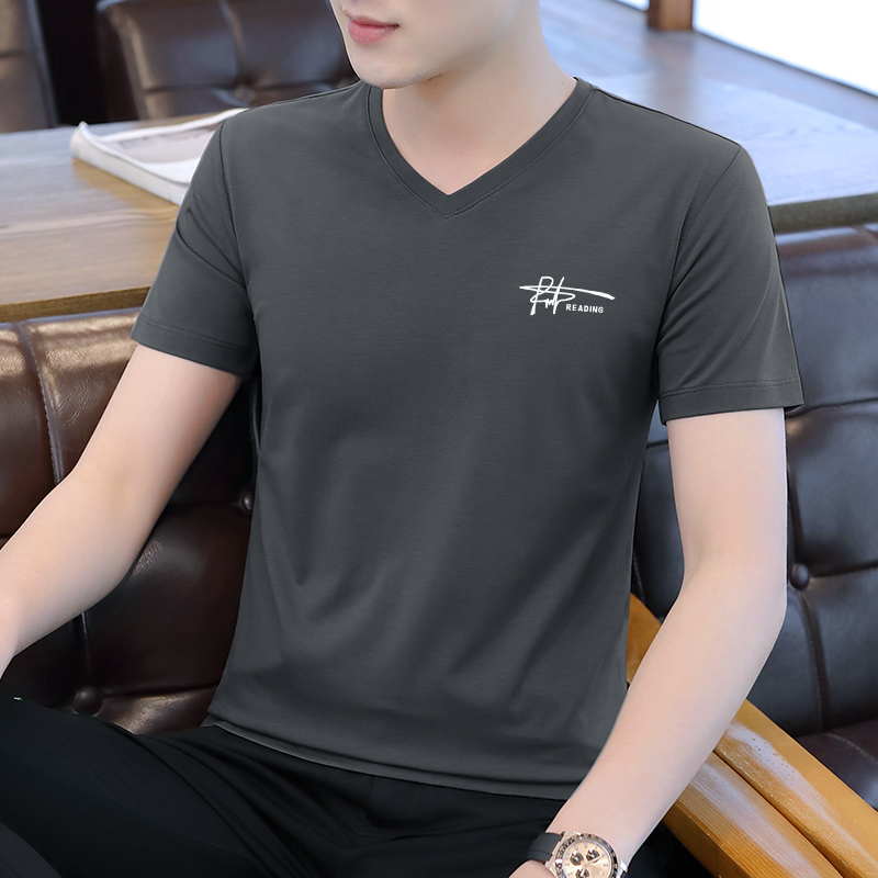 莫代尔棉V领短袖T恤男士上衣凉感半袖男装夏季冰丝衣服速干体恤衫