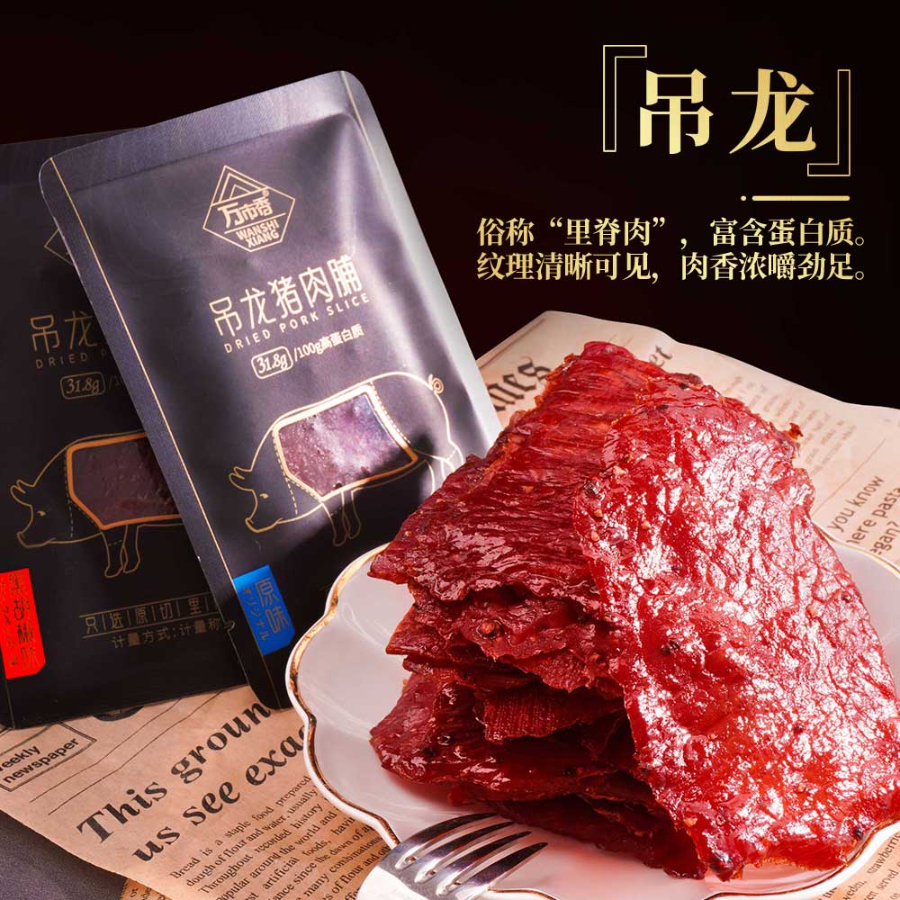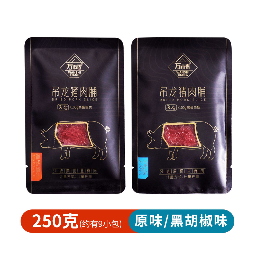 万市香吊龙猪肉脯零食品原切大片原味黑胡椒潮汕风味风干猪肉铺干