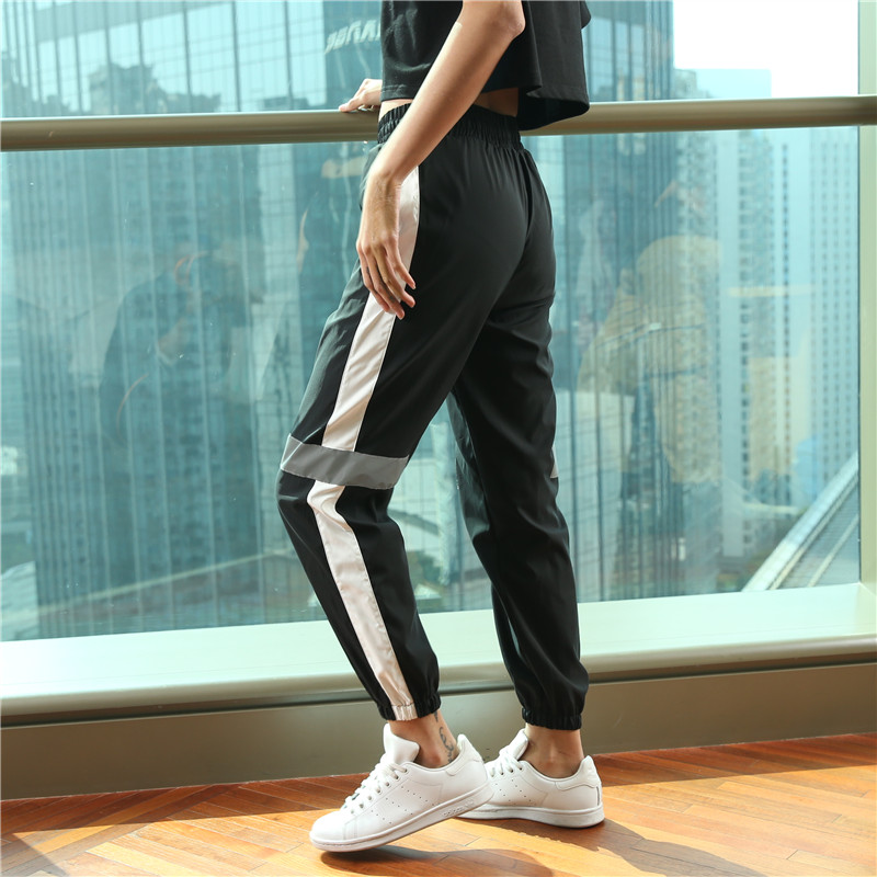 抖音网红加大码胖MM200斤宽松大码健身瑜伽女长裤速干反光条运动