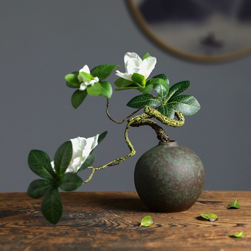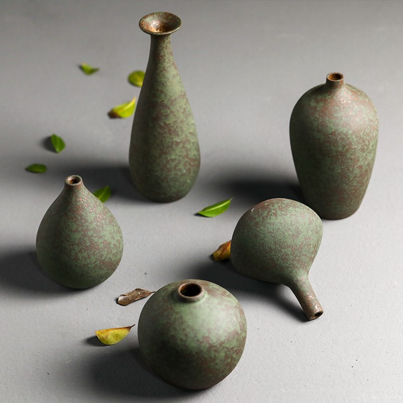 景德镇陶瓷小花瓶插花新中式禅意摆件复古客厅茶室榻榻米日式花器