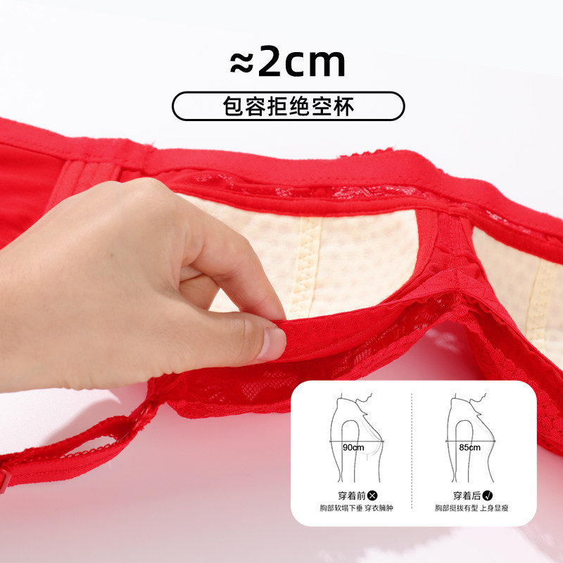 雅黛俪内衣女大胸显小显瘦全罩杯大红色本命年结婚内衣内裤套装