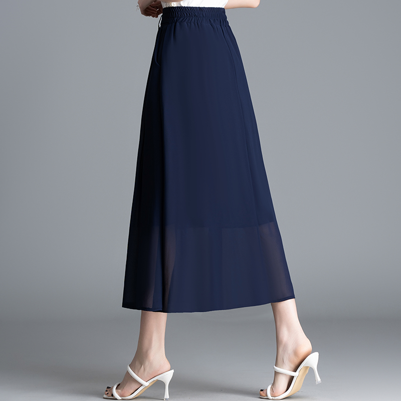 蓝色雪纺A字裙女高腰显瘦2025夏季新款半身裙中长款百褶裙休闲裙