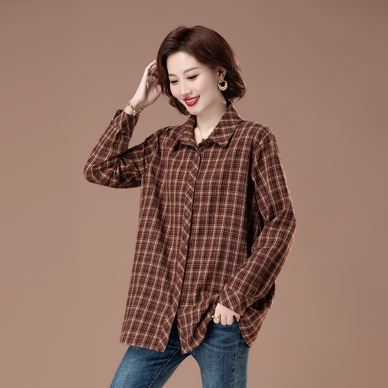 贵夫人妈妈女士衬衫女2025新款高端宽松大码纯棉衬衣洋气减龄上衣