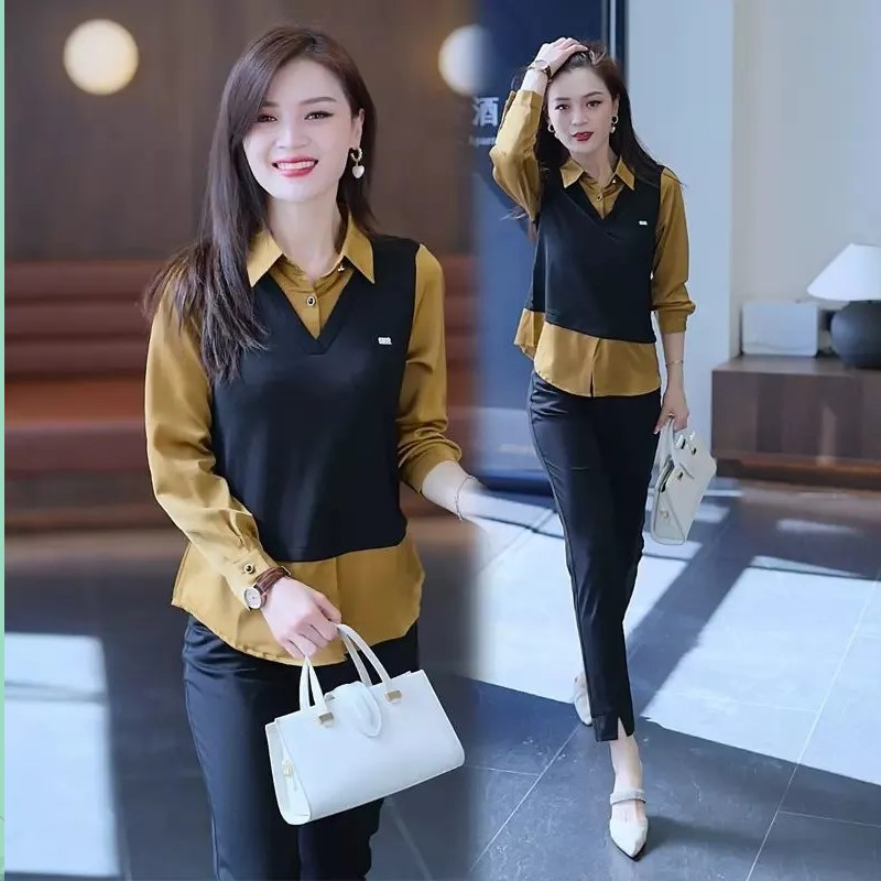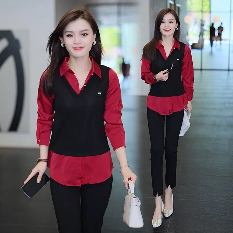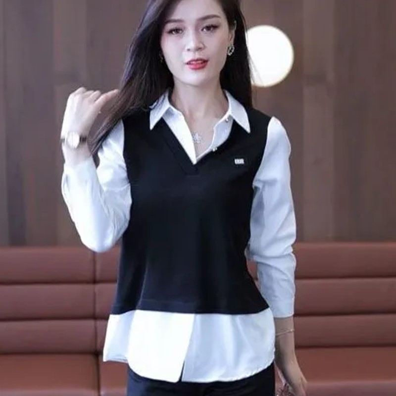 假两件衬衫女春装2025新款春秋季时尚减龄爆款洋气打底衫上衣外套