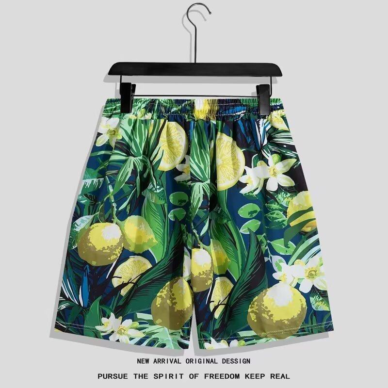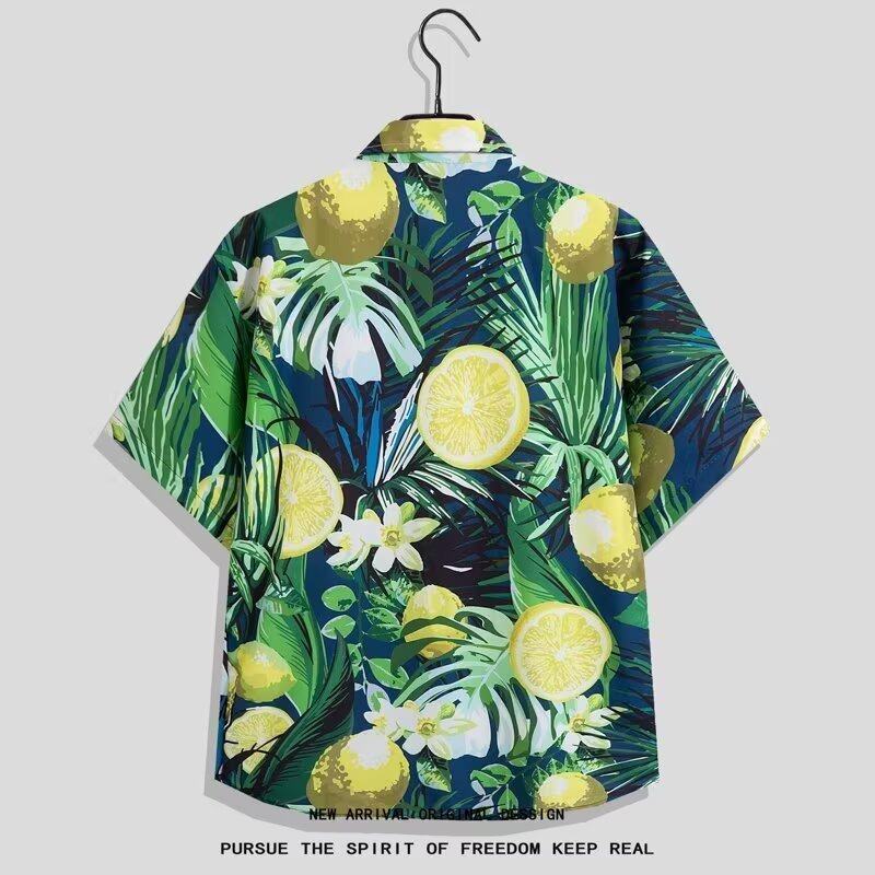 夏季冰丝短袖套装花衬衫男沙滩短裤度假风泰国夏威夷情侣装泼水节