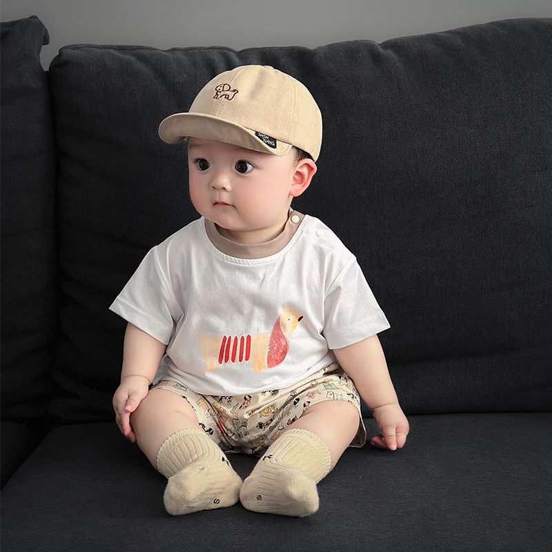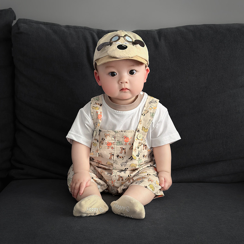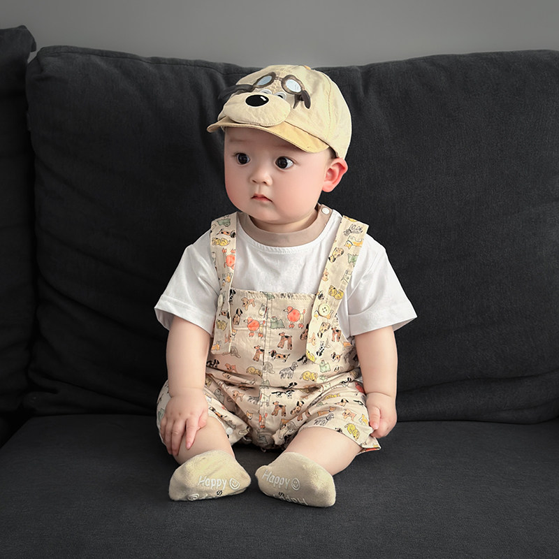 ins韩版男童夏季短袖短裤套装宝宝可爱小狗T恤婴儿卡通印花背带裤