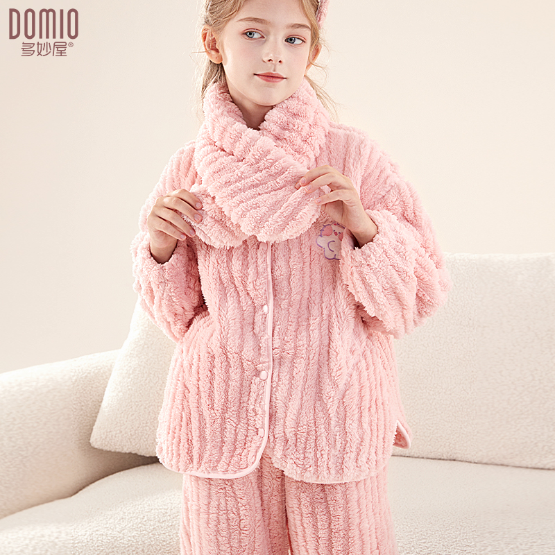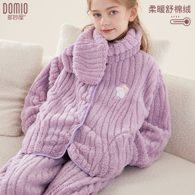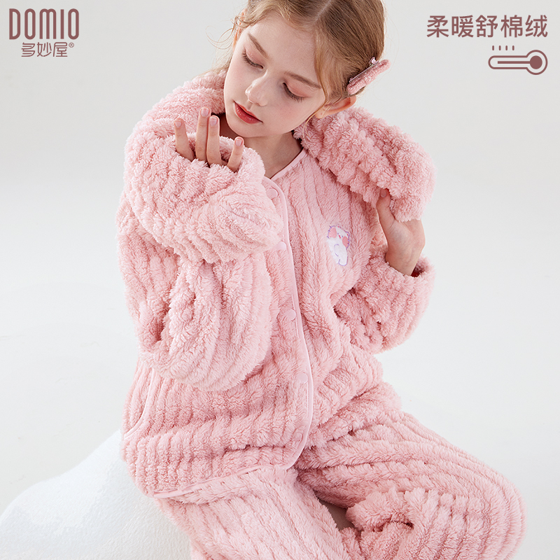 女童家居服秋冬装新款儿童珊瑚绒睡衣套装法兰绒中大童保暖童装厚