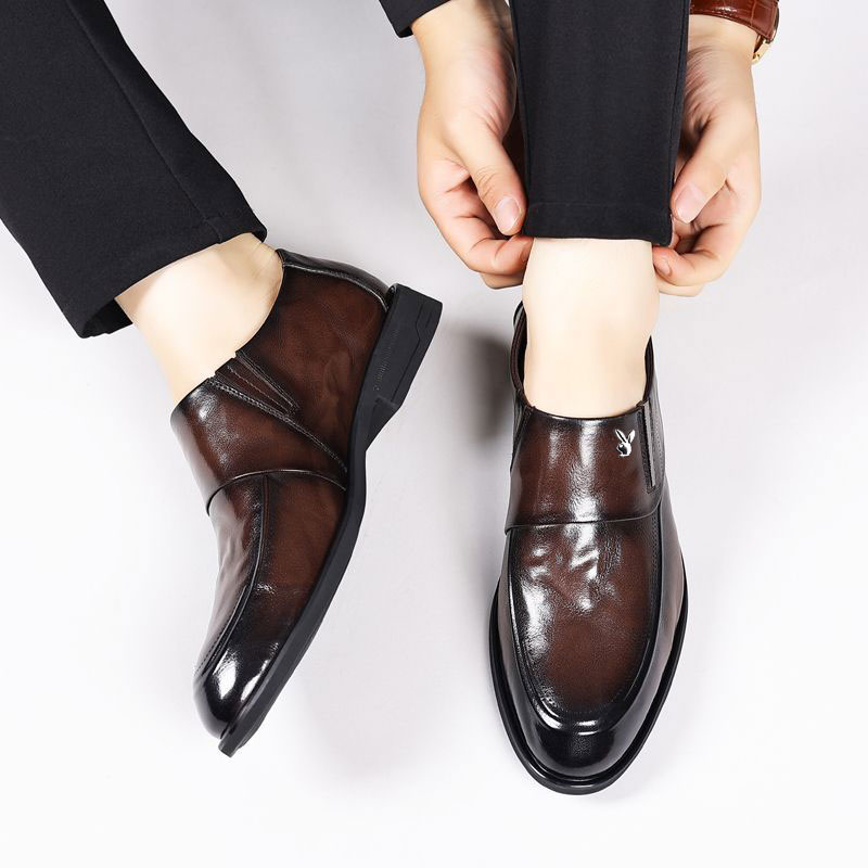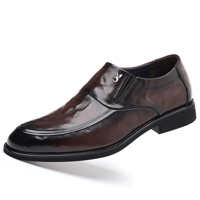 花花公子男鞋商务正装皮鞋男士真皮英伦套脚软面尖头小黑鞋婚鞋潮