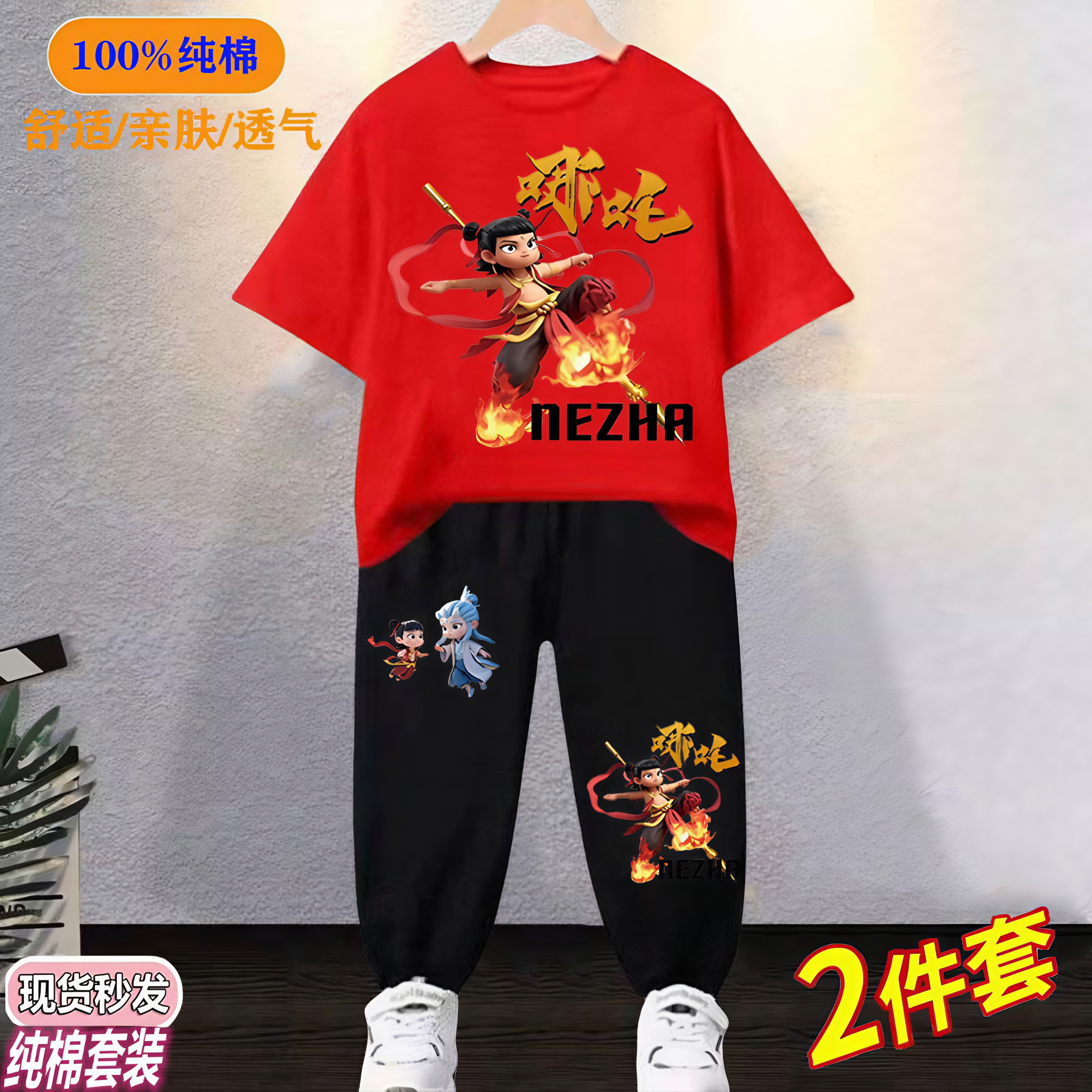 哪吒敖丙衣服男童纯棉t恤套装