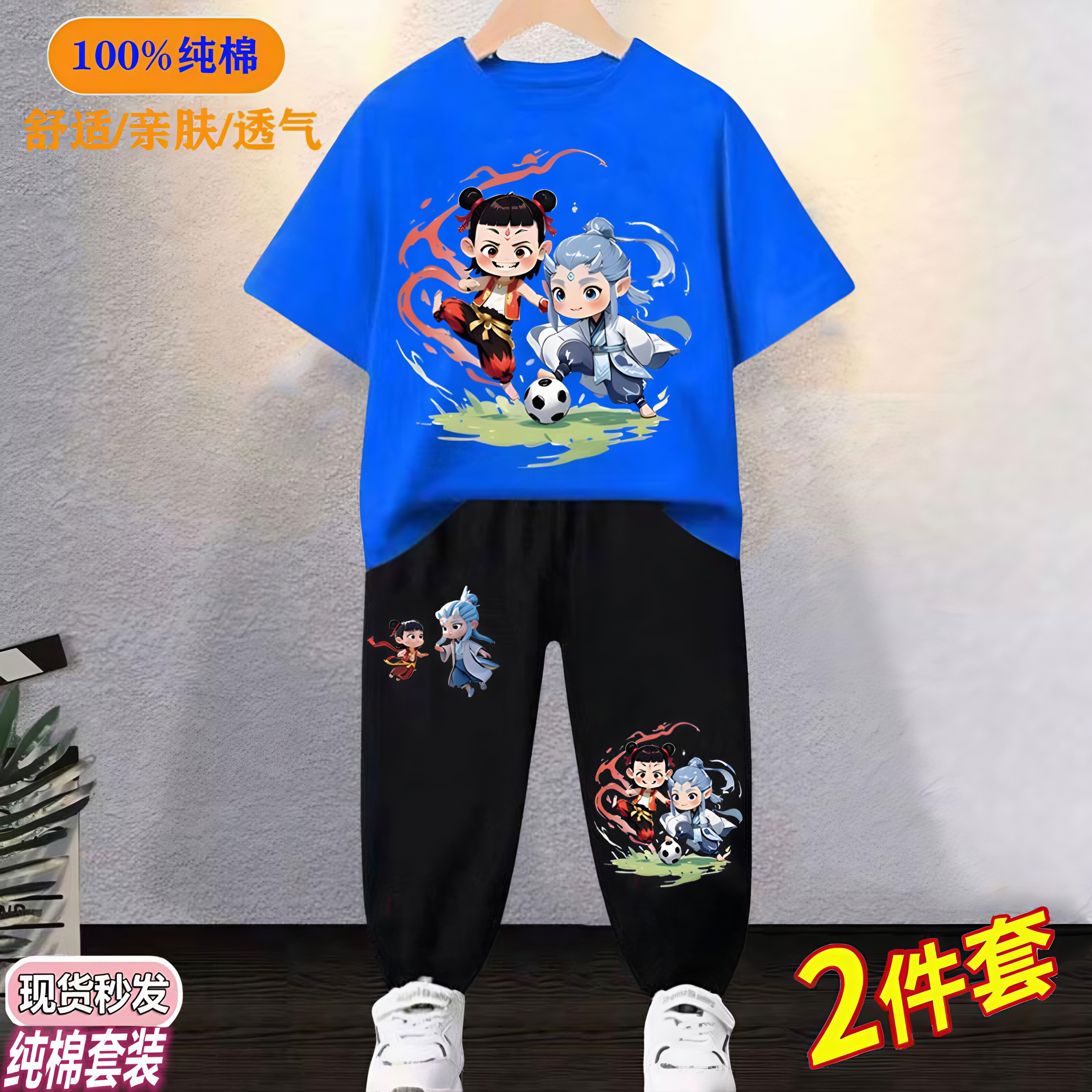 哪吒敖丙衣服男童纯棉t恤套装夏季2025年新款儿童短袖长裤两件套