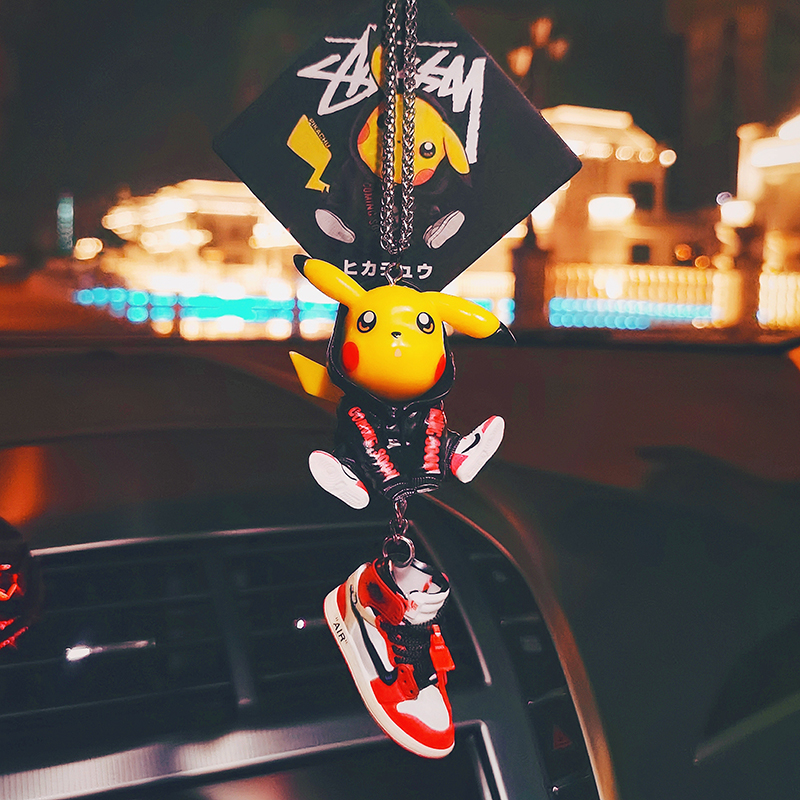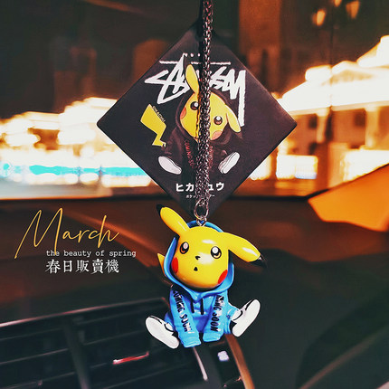 网红潮皮卡丘卡通公仔汽车后视镜挂件高档创意个性车载香片挂饰
