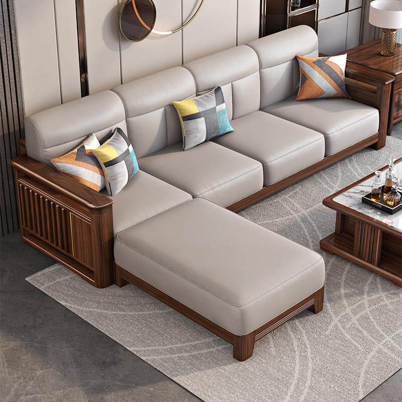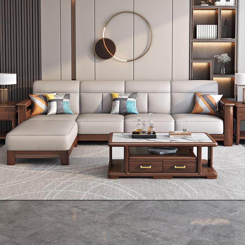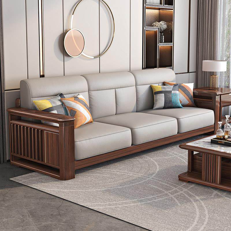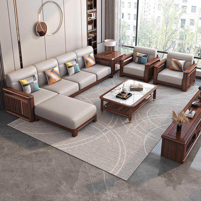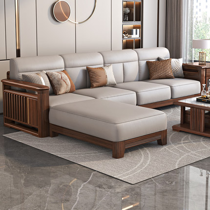 新中式实木沙发简约现代客厅组合大小户别墅型超纤皮胡桃木家俱
