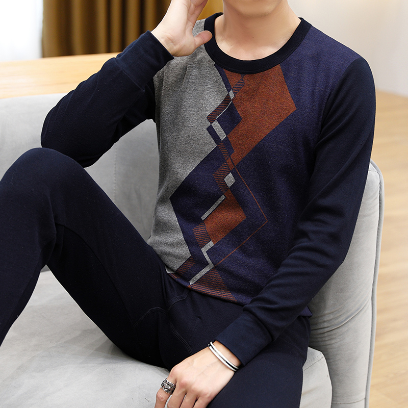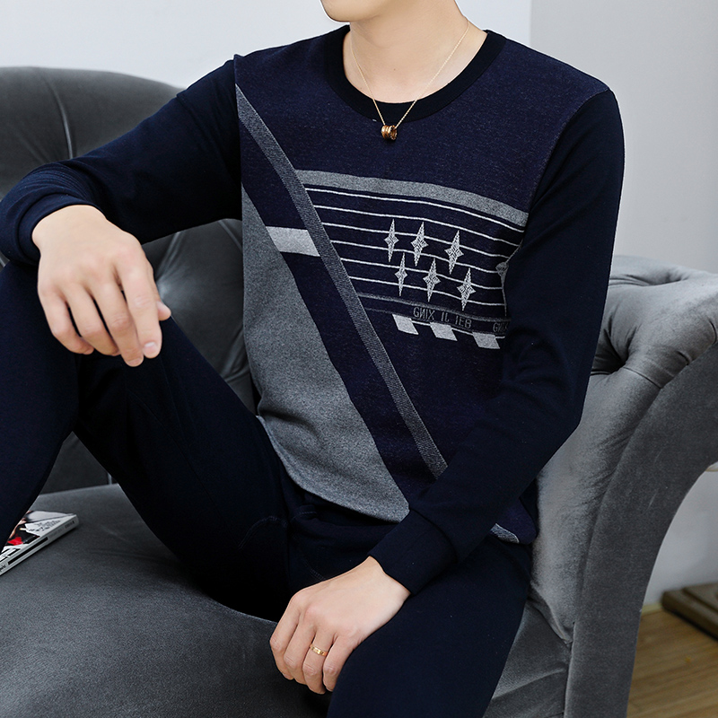 纯棉中老年人男士秋衣秋裤套装男纯棉保暖内衣薄款衬衣衬裤打底衫