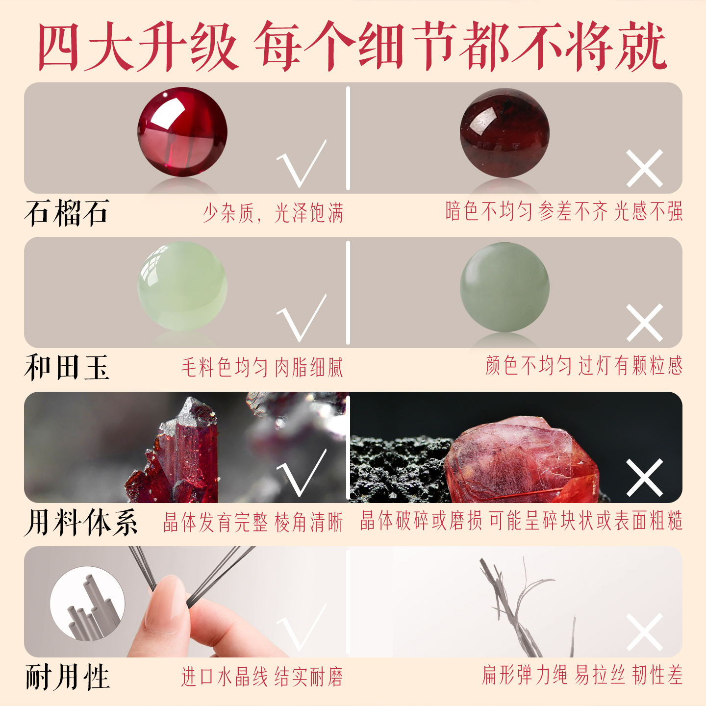 普陀山招桃花石榴石翡翠手串