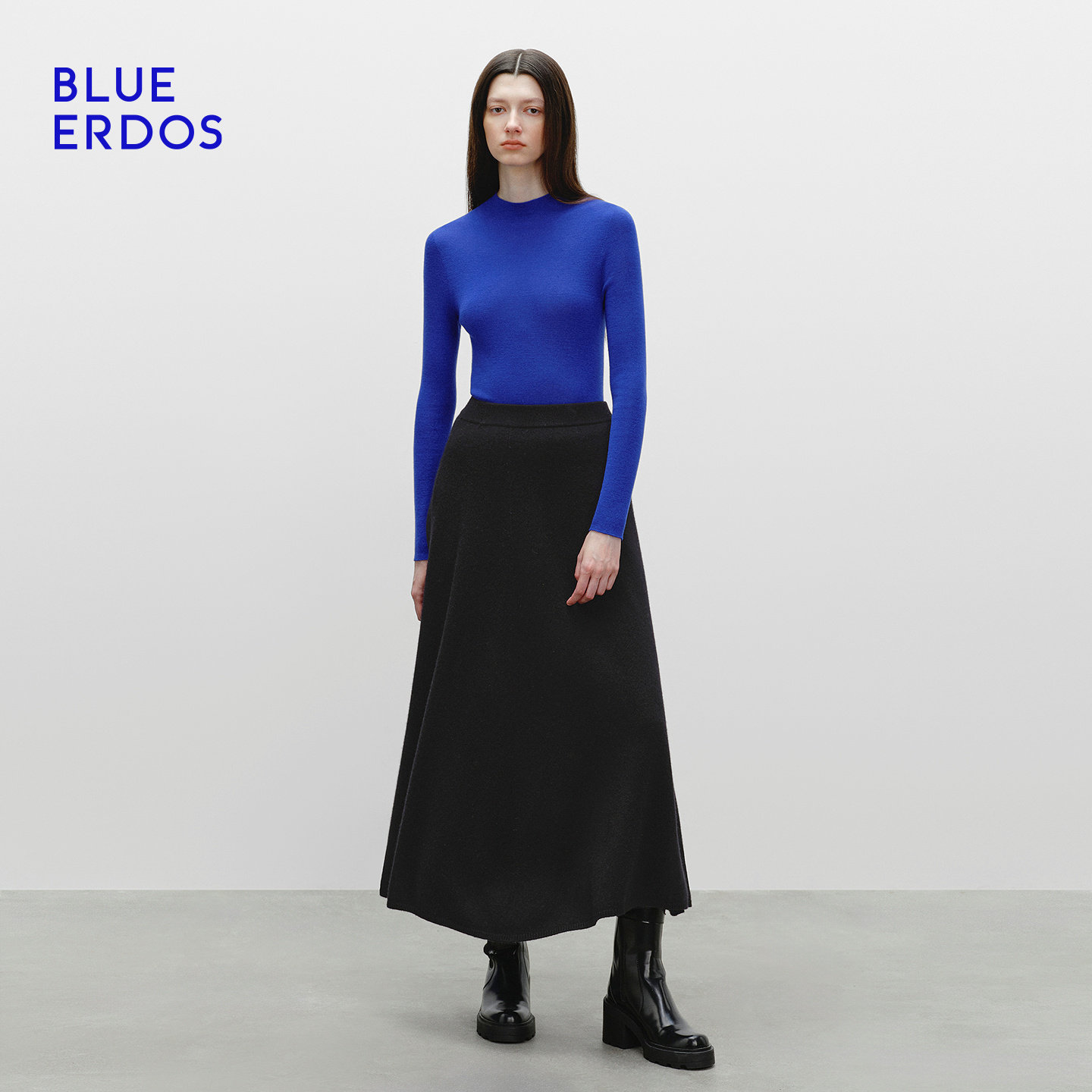 BLUE ERDOS 冬季新品时尚简约黑色松紧腰长裙半裙女