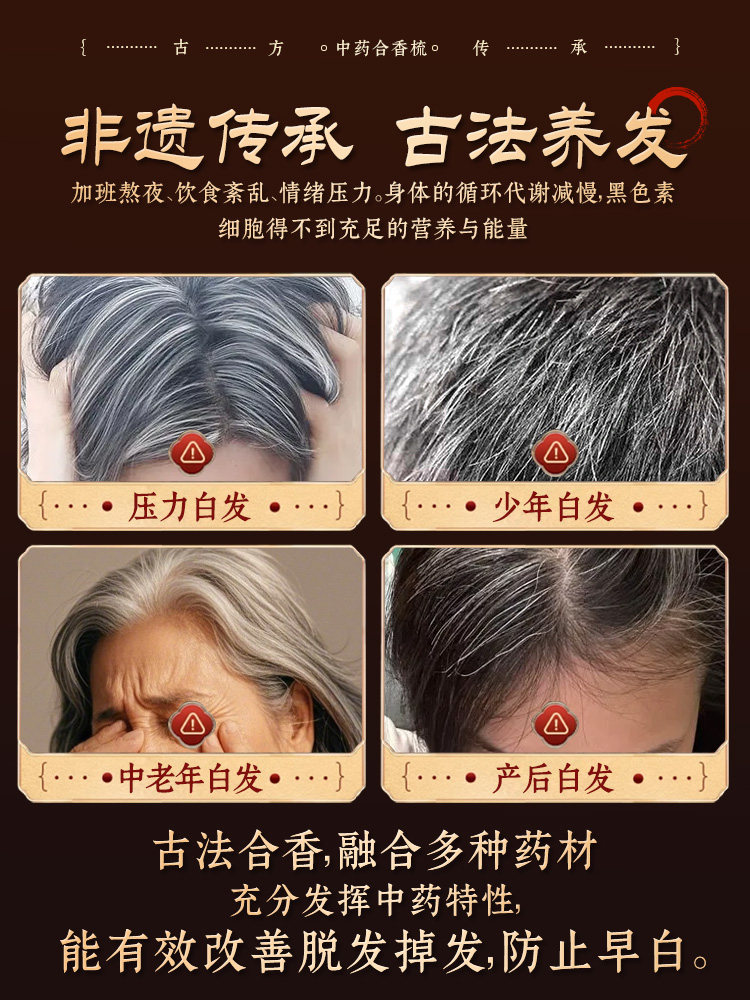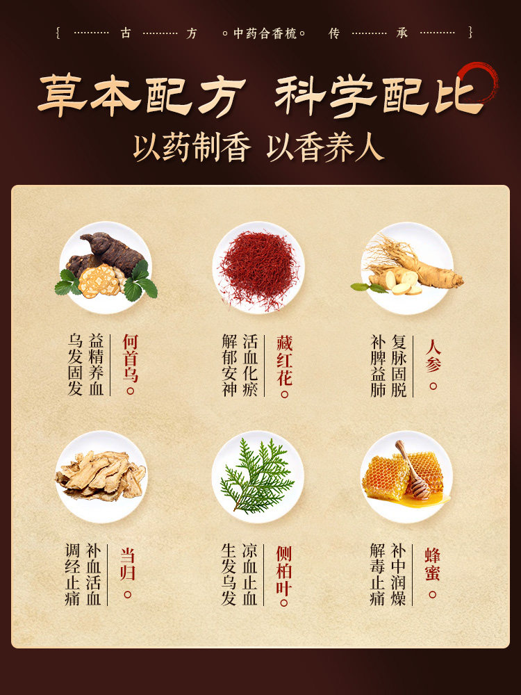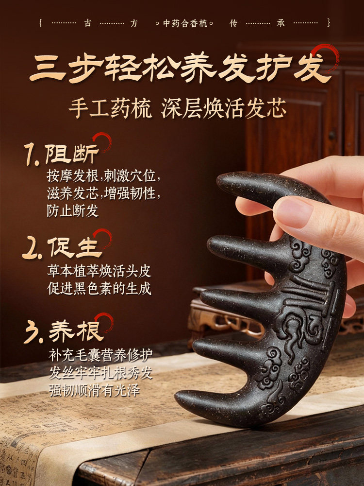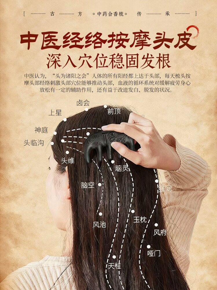 古法中药合香梳子何首乌侧柏叶固发养发黑发防断发头部经络按摩