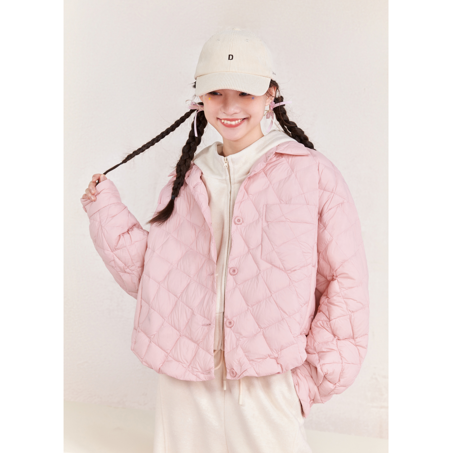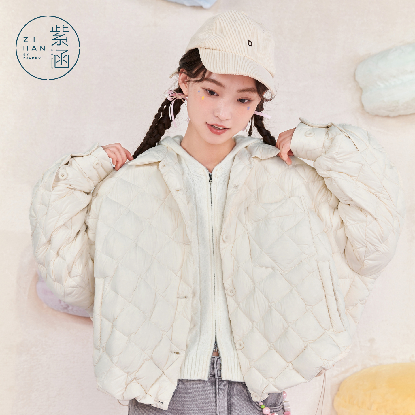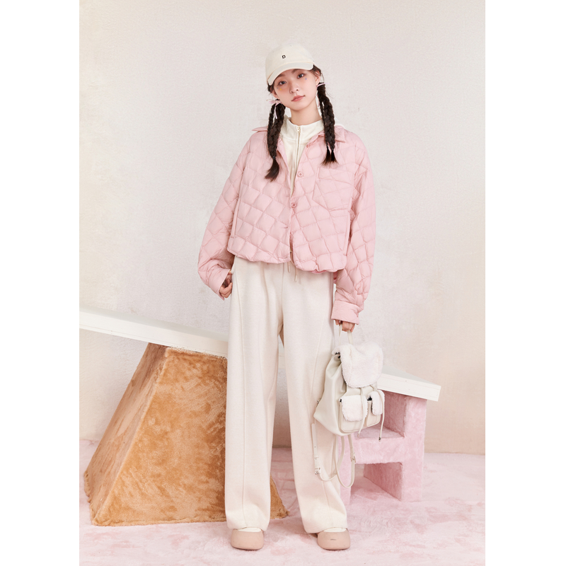 紫涵衬衫式菱格羽绒服女冬季新款轻薄设计感通勤宽松鸭绒衬衣外套