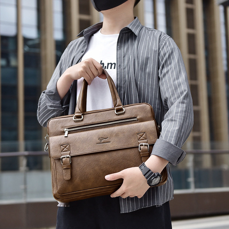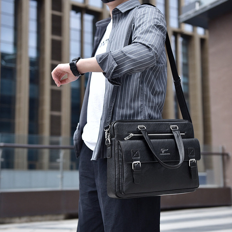 仅亏一天新款 麦克袋鼠男包横款商务手提包时尚大容量公文包背包