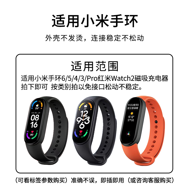 适用于小米手环7/8/9/10充电线NFC磁吸充电器头小米手环6/5/4/3/Pro红米Watch2智能运动通用原一体装充电线