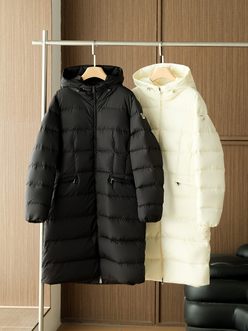 2023秋冬季新款m家中长款羽绒服修身显瘦经典女款连帽保暖