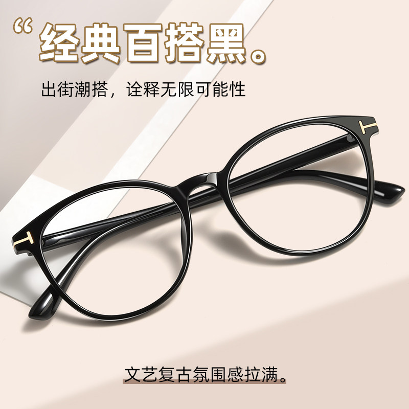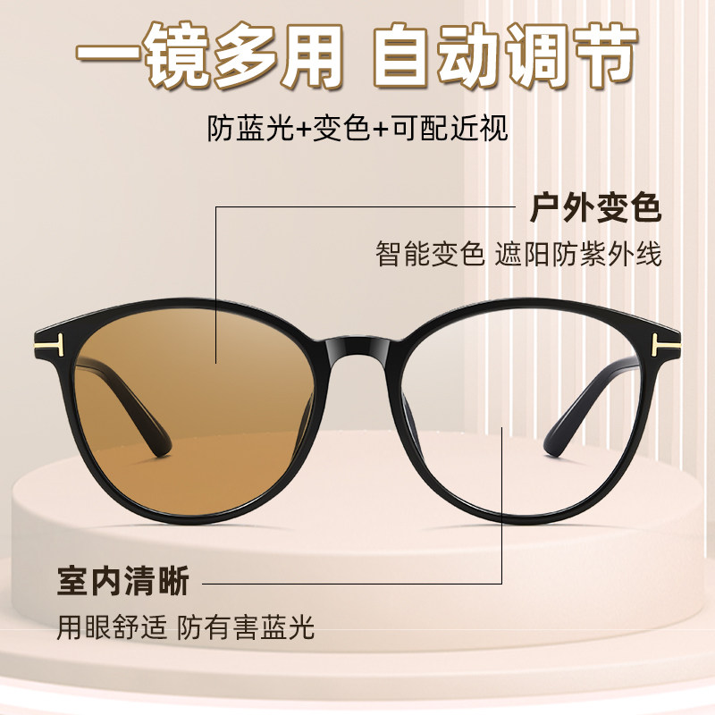 赵今麦同款感光变色眼镜近视女可配度数防蓝光抗辐射素颜黑框平光