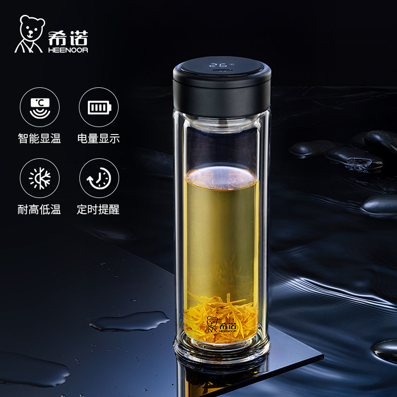 希诺双层玻璃杯显示温度耐高温泡茶杯带滤网高档商务智能水杯男