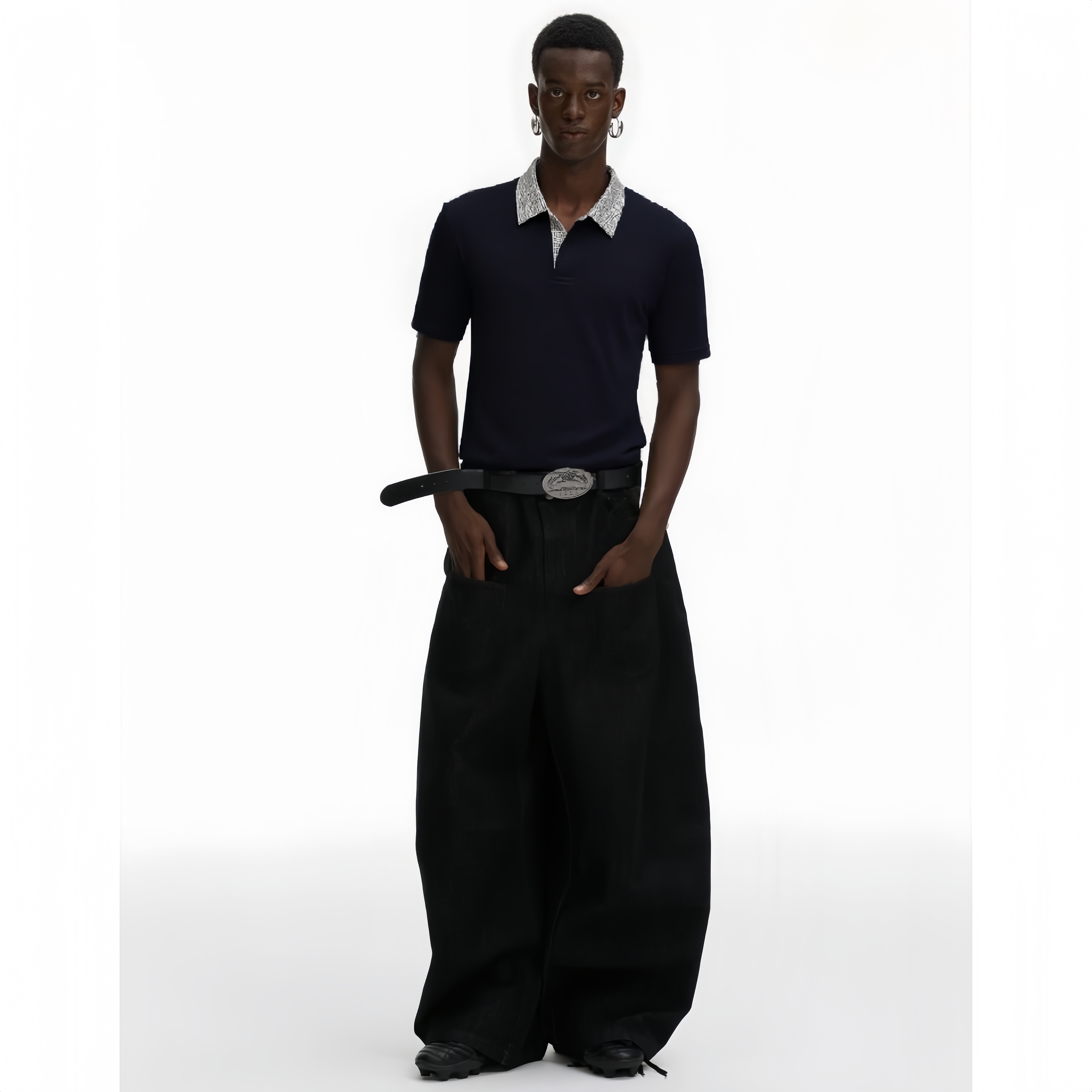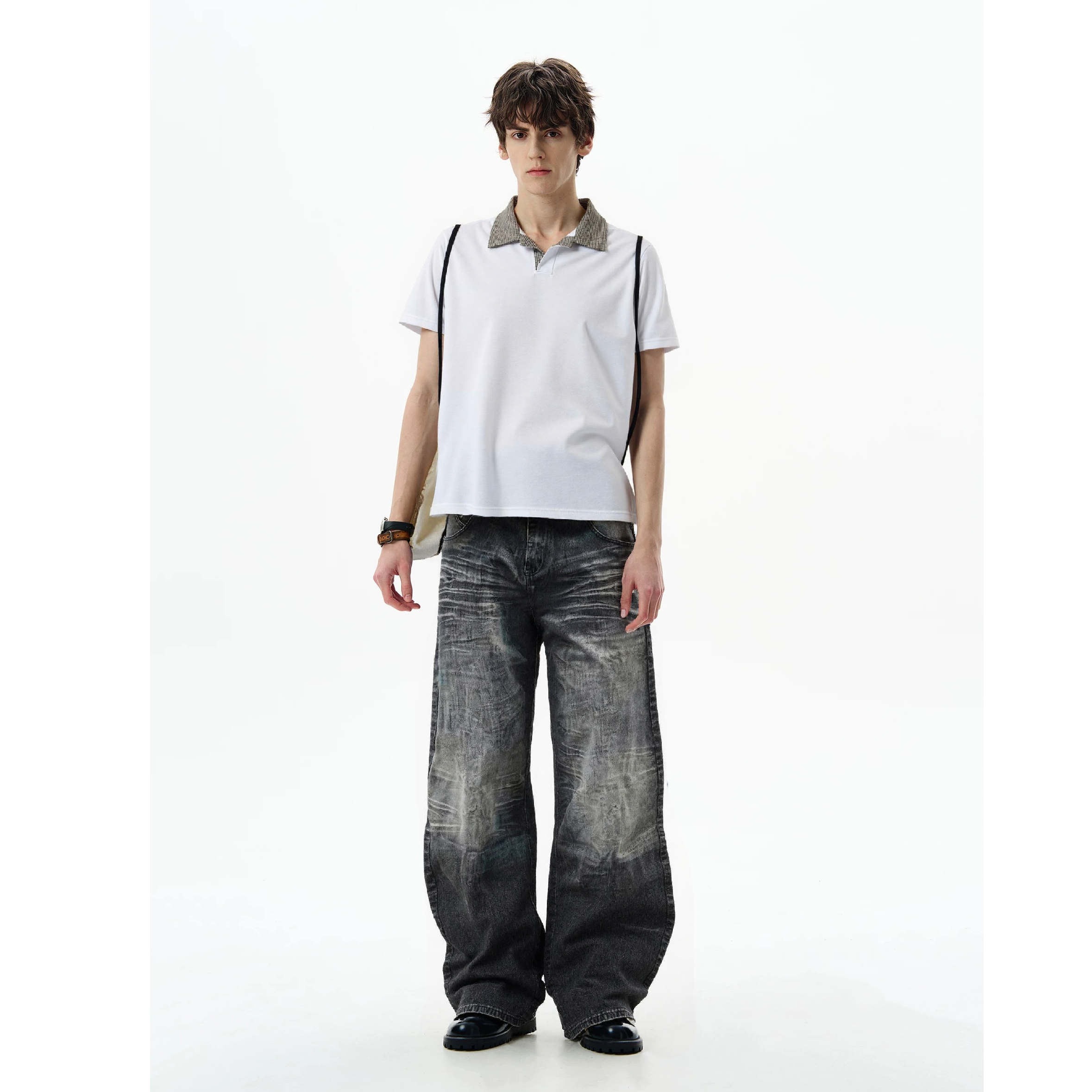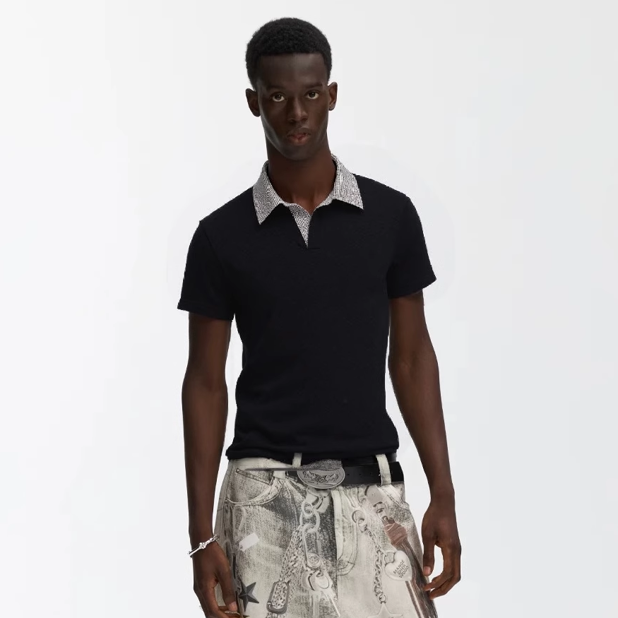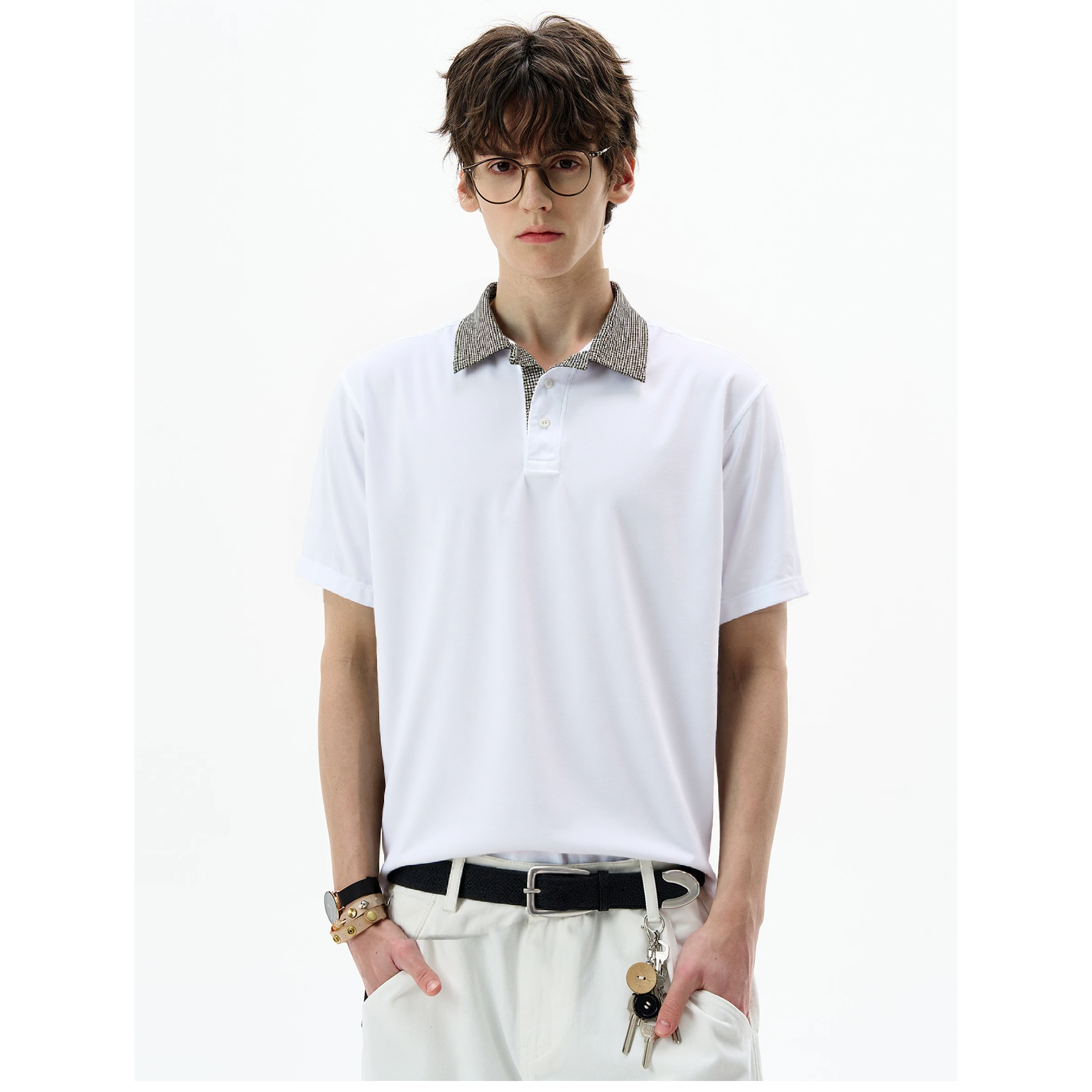He刺野/千鸟格拼接Polo衫cleanfit老钱风短袖t恤太空棉松弛短袖