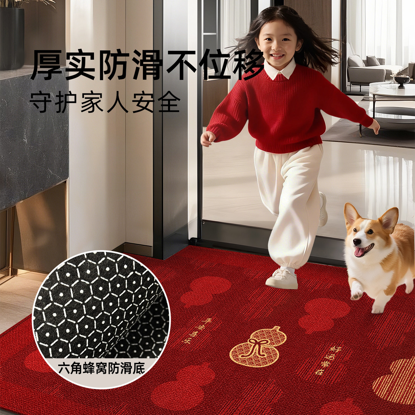 门口地垫2026新款马年红色入户门专用地垫玄关进门脚垫防滑地毯