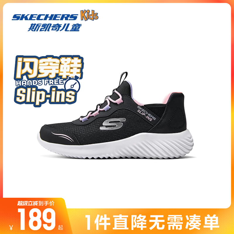 斯凯奇outlets儿童闪穿鞋春夏款一脚蹬轻便休闲鞋女童简约运动鞋