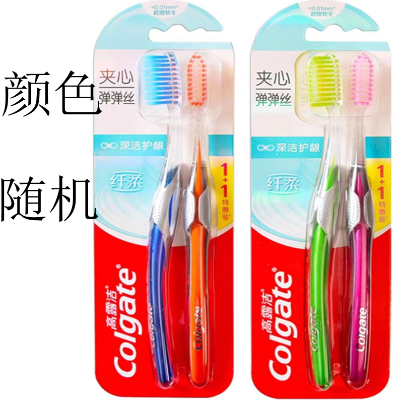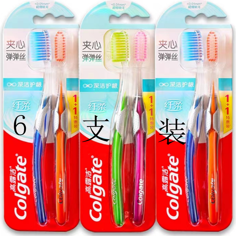 高露洁纤柔双核深洁牙刷成人夹心弹弹丝深层护龈软毛家庭4支装