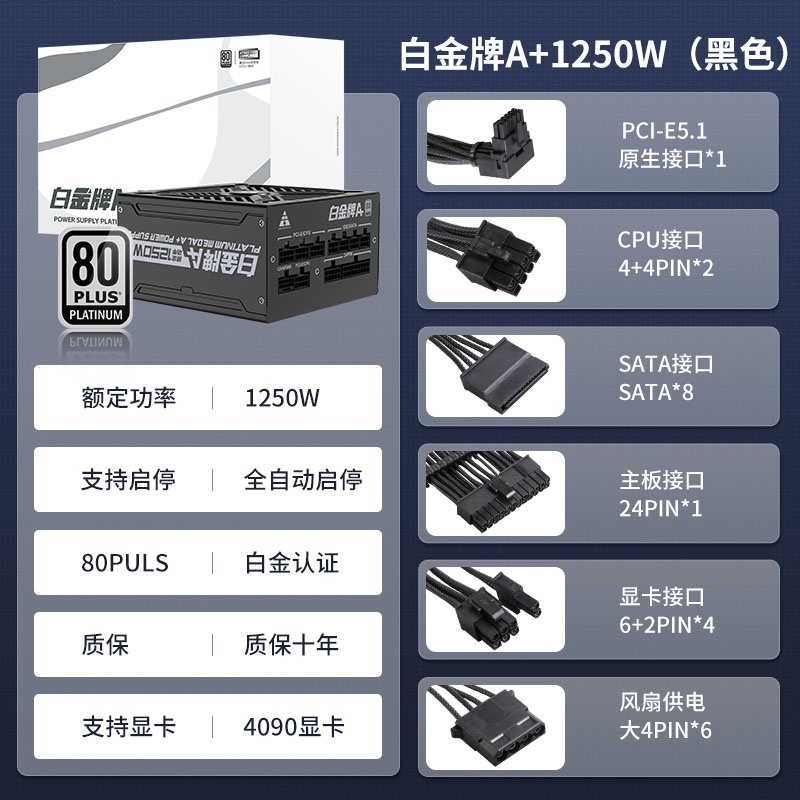 金河田1050W电源80PLUS白金牌铜牌ATX3.1全模组直出式电脑电源