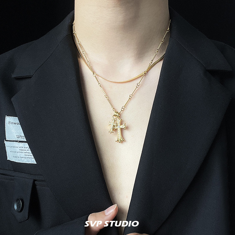 巴黎【设计师】SUMEINI の双十字架项链男女潮金色痞帅高级感嘻哈