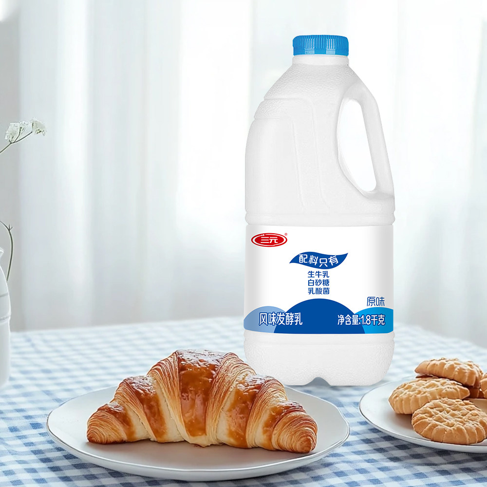三元风味酸牛奶1.8kg*1桶商用家庭餐饮水果沙拉炒酸奶低温发酵乳