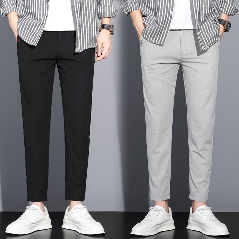 休闲裤男夏季薄款九分裤修身小脚裤子男士9分西裤弹力夏天不沾毛