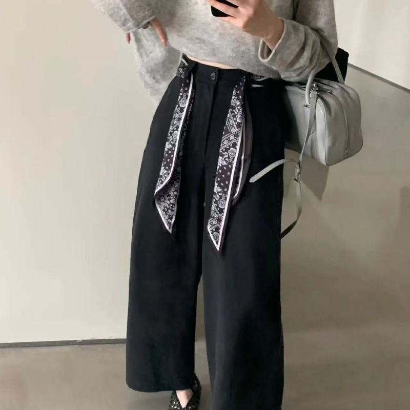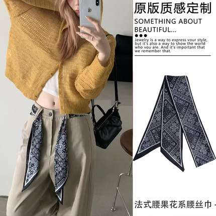 日系复古黑色腰果花细窄版丝巾腰带女配牛仔裤腰链百搭腰间配饰品