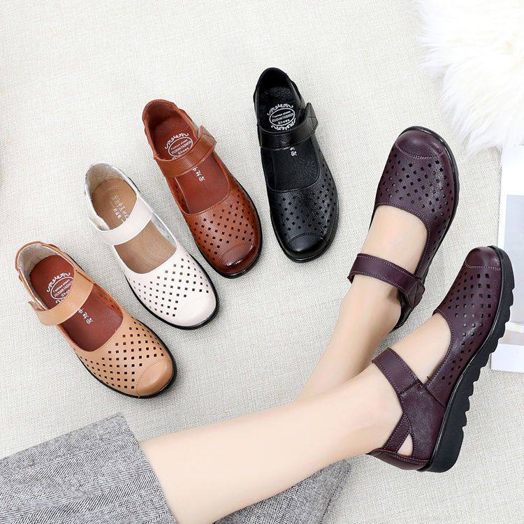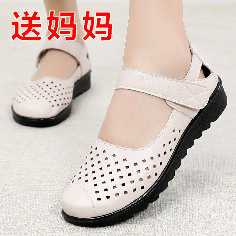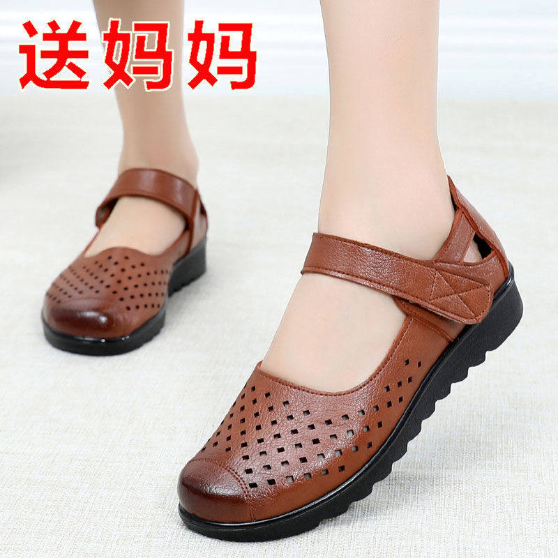 弥尊大东妈妈凉鞋平底防滑中老年凉鞋女软底新款夏宽头轻便洞洞鞋