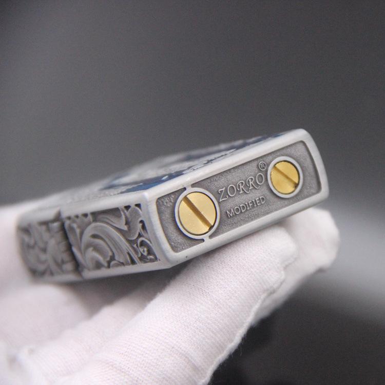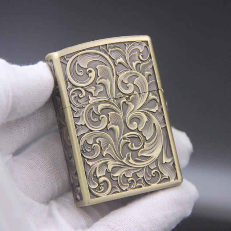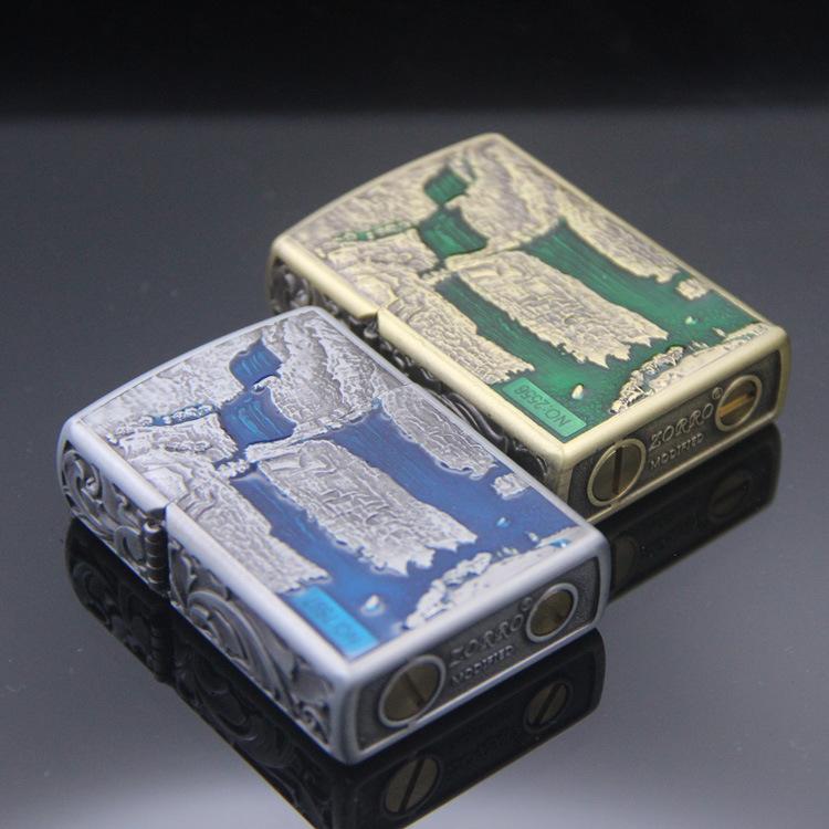 zorro佐罗正品煤油打火机砂轮防风纯铜合金属密封高山流水唐草花
