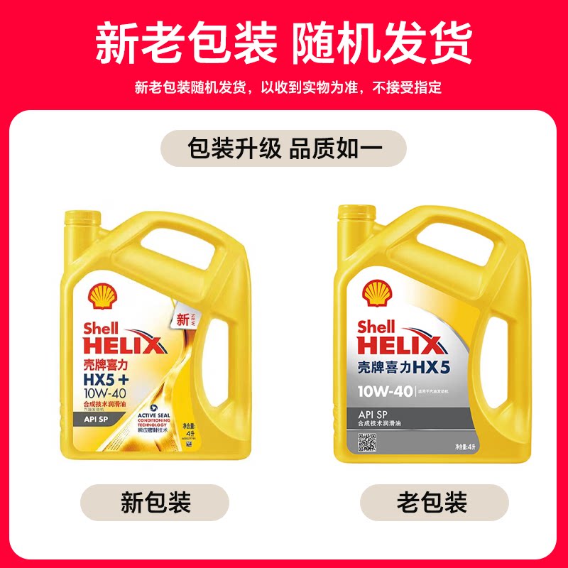 天猫车站自营 壳牌机油10W40半合成黄喜力黄壳HX5 SP机油官方4L