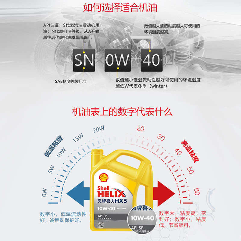 壳牌机油10W40黄壳HX5半合成