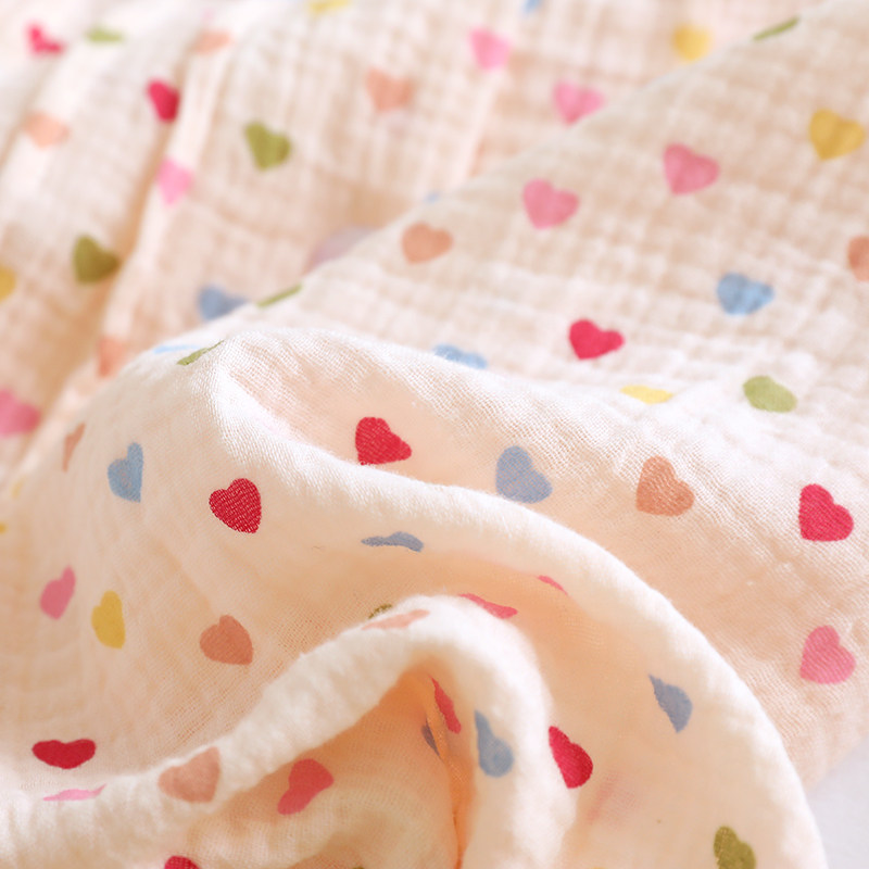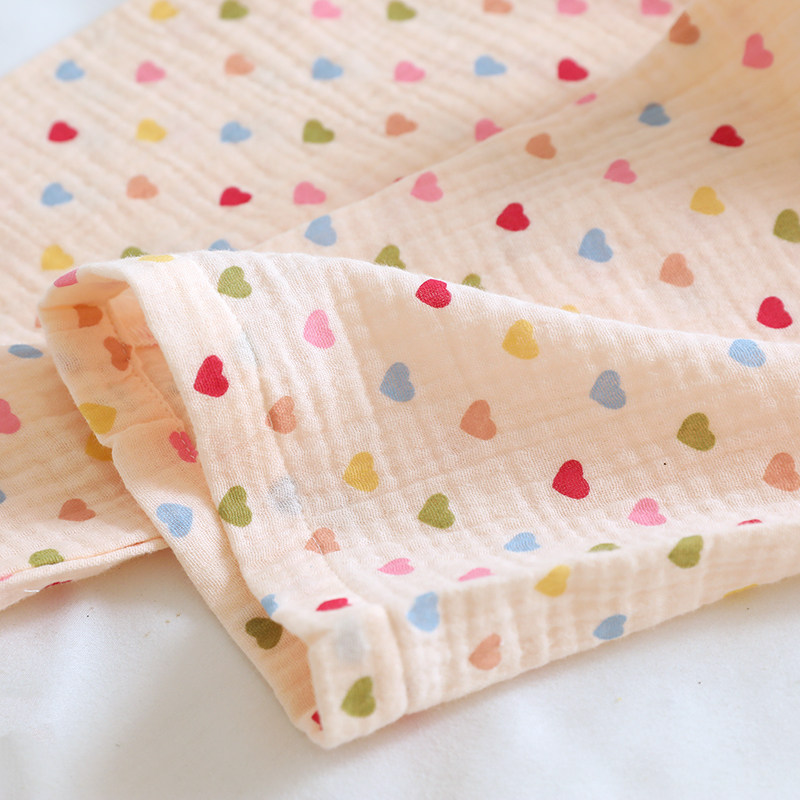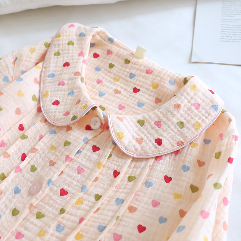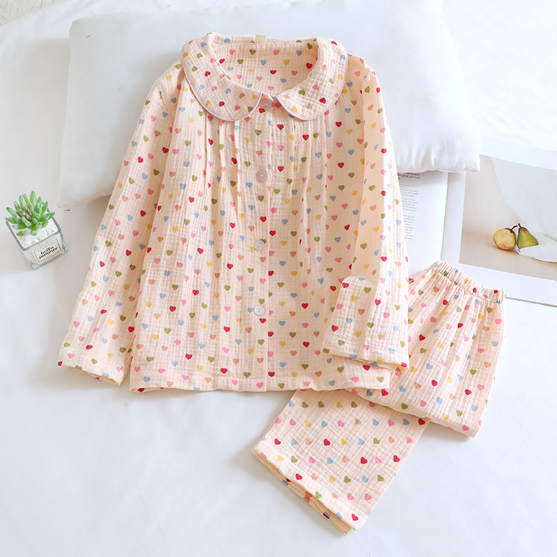 日系春夏薄款儿童纯棉纱布泡泡棉纱睡衣套女童全棉爱心长袖家居服