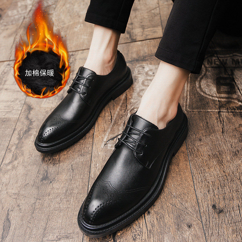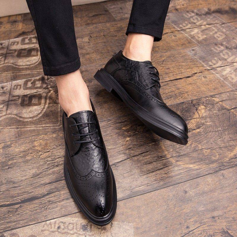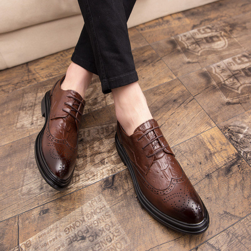 布洛克男鞋休闲真皮潮流新郎婚鞋商务尖头内增高英伦风发型师皮鞋