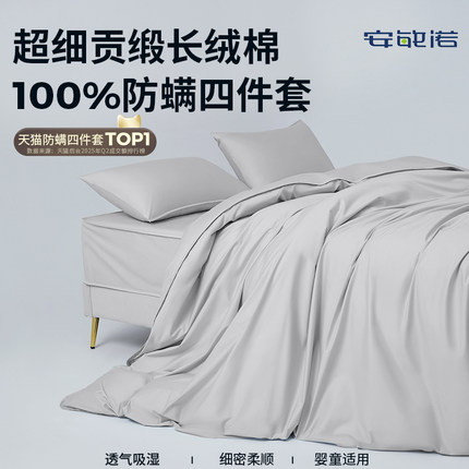 安敏诺床单四件套纯棉防螨儿童床笠被套学生宿舍床品套件全棉床罩