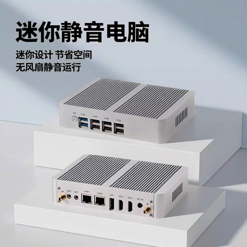 占美 12代N100mini小主机四核工控无风扇电脑办公家用广告机HT690